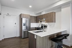 Welcome to Lightwell, one of Kamloops’ most modern and centrally located condo communities. This stylish 1 bedroom + den, 1 bathroom apartment offers a bright, open-concept layout with large windows that frame beautiful northern views of downtown and mountains. The kitchen features sleek cabinetry, quartz countertops and stainless steel appliances. The living area flows nicely to a private covered balcony — the ideal place to relax and take in the view. The primary bedroom is generously sized with great natural light, while the den offers flexibility for a home office, guest room, or hobby space. A 4-piece bathroom and convenient in-suite laundry complete this well-designed floor plan. Secure underground parking included. The building offers a modern courtyard design, with a gorgeous rooftop patio to enjoy. Just steps to shopping, restaurants, transit, parks, and the downtown core. A fantastic option for first-time buyers, downsizers, or investors looking for a low-maintenance, move-in ready home in a prime location.