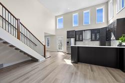 Centrally located within walking distance to restaurants, shopping, MacDonald park, MacArthur Island, the Rivers Trail, public transit & all age of schools and nestled on a quiet, charming street amongst long time residents. Be captivated by this custom home as you enter the front door into the open concept living area featuring 17 foot ceilings, an abundance of selectively placed windows for maximum light and privacy and a floating tiled staircase. This 15 year old home has seen recent updates including fresh paint, newly installed laminate, kitchen backsplash and stone countertops. A built in buffet with stone top in the dining room provides additional storage next to the well equipped kitchen, excellent for entertaining with bar height seating for four, stainless steel appliances and walk out to to your fully fenced backyard with an above ground pool, a cozy sitting area and side gates to the front yard. The main floor is completed with two bedrooms, a 3 piece bath & laundry room while upstairs you will find two additional bedrooms, each with their own ensuites. The spacious primary bedroom offers his & hers walk in closets and a 5 piece ensuite with double vanity, corner bath tub and a glass & tile shower. In addition, a 6 ft crawl space provides ample storage, the home is equipped with central a/c, a new furnace, 200 amp service and lots of parking!
