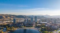 BLOWOUT HOLIDAY PRICING! Soak in the best of downtown Kelowna living! Welcome to 1151 Sunset Drive. This bright southwest-facing 1 bedroom + den, 1.5 bathroom executive suite soars high on the 11th floor, capturing breathtaking lake and city views through floor-to-ceiling windows. Designed for modern comfort and sophistication, this residence features engineered hardwood, ceramic tile, and granite finishes throughout. The gourmet kitchen boasts premium stainless steel appliances, a gas range, sleek cabinetry, and a stunning granite waterfall island—perfect for entertaining or casual dining. The den is ideal for a home office and can even fit a small bed for guests. The primary bedroom offers its own ensuite and direct access to a covered deck with incredible views of Okanagan Lake and the downtown skyline—perfect for morning coffee or evening relaxation. Enjoy resort-style amenities including an outdoor splash pool, fitness centre, BBQ area, meeting room, and owners’ lounge designed for connection and comfort. Additional conveniences include in-suite laundry, custom window coverings, a storage locker, and secure underground parking. Located in one of Kelowna’s most desirable downtown towers, you’re just minutes from the beach, boutique shopping, restaurants, the waterfront boardwalk, and the upcoming UBCO downtown campus. Pet-friendly and move-in ready, this suite embodies the ultimate Okanagan lifestyle.