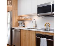 Studio home at Revo Kelowna, the latest Millennial Developments Smart CommunityTM. Centrally located in the Capri Landmark district with a 98 Bike ScoreTM, pet and rental-friendly, ideal for first-time buyers and investors. Peekaboo lake view with west-facing soft natural light, thoughtful floorplan with roomy full bathroom, ample storage, and private balcony. Quality stainless steel appliance package including dishwasher and washer/dryer. Incredible building amenities include rooftop recreational terrace, gym, spa- inspired wellness facilities, indoor and outdoor social spaces, coworking area, expansive communal green space, and organic gardens. Fully tech-enhanced living with digital keys, concierge app, smart parcel delivery, touchless facial recognition entry, and more. Presentation Centre featuring a full-sized studio show suite open for tours by appointment. Delivery mid 2026. Revo Kelowna – Revolutionizing Living Spaces. (id:27)