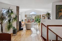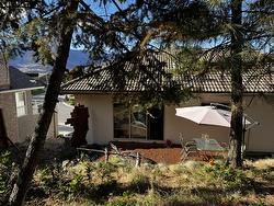 Located in the prestigious northern part of Magic Estates, this architecturally designed 4 bed 3 bath home offers gorgeous views of Okanagan Lake and the mountains. Designed to maximize natural light, it features oversized windows on all sides, bathing every room in daylight and offering stunning views from nearly every angle. With far more windows than a typical home, the design ensures a bright, open atmosphere throughout. Custom built with quality and longevity in mind, the home features a durable cement tile roof, offering fireproofing, exceptional thermal mass, and superior insulation for year-round comfort and energy efficiency. The spacious foyer leads to Douglas fir stairs with glass railings, opening to the upper level. Solid hardwood and ceramic tile floors provide timeless elegance. The living area boasts a cathedral ceiling, a gas stove on a stone feature wall, and panoramic lake and mountain views. A 180 sq. ft. covered balcony is perfect for relaxation. The kitchen offers ample counters, a gas range, and custom-built cabinetry for style and functionality. The dining room opens to a red cedar deck and tranquil low maintenance yard with mature trees. The lower level includes a bright office or studio with large windows, a spacious gym that can double as a theater, music room, or flex space, a 4th bed, a 3rd bath, and laundry. Offered for sale for the first time, this home reflects exceptional care and attention to detail, with easy access to Knox Mountain Park.
