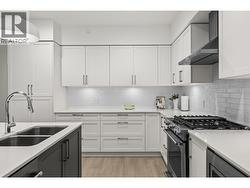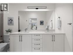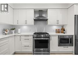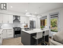 Discover refined living at Quail Landing, an exclusive enclave along the 18th hole of the Championship Quail Course. This beautifully crafted home blends sophisticated design with everyday comfort. Bright interiors by Hatch Interior Design showcase wide-plank German-made laminate flooring, 9’ ceilings, expansive sliding doors for seamless indoor-outdoor living, and privacy film on all windows. A sleek linear stone fireplace anchors the living space, while smart thermostats and energy-efficient systems ensure year-round comfort. The chef-inspired kitchen features premium KitchenAid appliances, including a 5-burner gas range, quiet dishwasher, and French-door fridge, complemented by quartz countertops, soft-close shaker cabinetry, and a custom island perfect for entertaining. Upstairs, the spa-like ensuite offers heated tile floors, quartz counters, chrome fixtures, and a custom glass shower with bench seating. A spacious 586 sq. ft. crawl space provides excellent storage. Enjoy resident-only amenities including a private firepit, EV charging upgrades, natural gas BBQ hookups, and private road access. Minutes to the airport, UBCO, and walking trails, this well-maintained community also offers green space and a peaceful setting. (id:27)