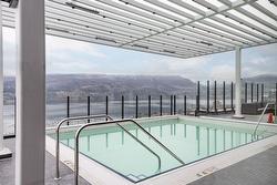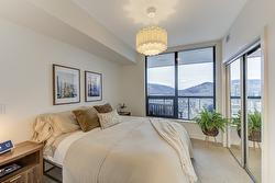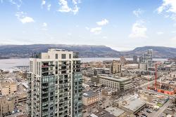 Welcome to Bertram, located in the heart of Downtown Kelowna. Recently built in 2024, this bright two-bedroom, two-bathroom outside corner unit is perched way up on the 25th floor where you can enjoy stunning unobstructed lake, city and mountain views. The 805 sq. ft. layout is thoughtfully designed with split bedrooms for privacy, air conditioning, expansive windows, and a clean modern kitchen featuring quartz countertops and stainless steel appliances. Step out onto the covered deck and enjoy a glass of wine with a beautiful view.