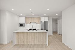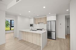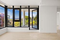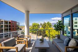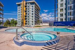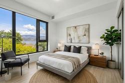 Priced well below assessed value of $854,000! Live steps from the shoreline in Aqua Waterfront Village, an elevated lakefront community in Kelowna’s desirable Lower Mission. This 2 bed, 2 bath home offers approx. 885 sq. ft. of intelligently designed interior space with two bedrooms, expansive windows and a spacious S/W balcony, offering natural light and lake views above the treetops. A split bedroom layout allows for privacy and flexibility. The kitchen features modern two-toned cabinetry, quartz countertops, under-cabinet LED lighting and a premium stainless steel appliance package, incl. a wine fridge. Enjoy luxury wide-plank vinyl flooring throughout the kitchen, living/dining area and bedrooms, blackout roller shades in both bedrooms and an energy-efficient central heating/cooling system. The spa-inspired bathrooms showcase porcelain tile and quartz countertops. 1 secure parking stall (with the rare chance to buy a 2nd stall), 1 storage locker, 1 bike locker are included. Amenities include an outdoor pool and hot tub, gas fire pits and BBQ’s, a fireside lounge and co working area, 2-level fitness centre, pet wash and bike wash and maintenance area. Vacant and ready for quick possession. Only a 5% deposit required. Buyer to verify all details and measurements if deemed important. All offers must be written on the Developer’s CPS.