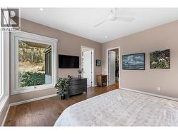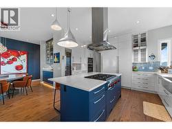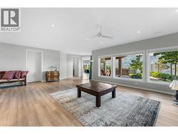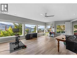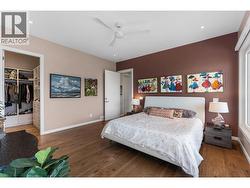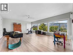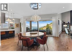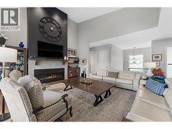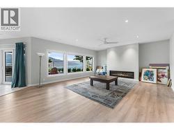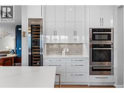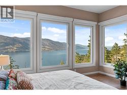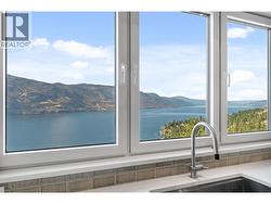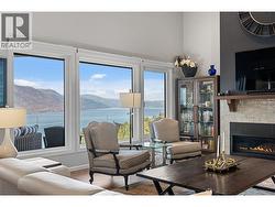 Lakeview residence in North Clifton Estates designed for seamless indoor-outdoor living, this home captures panoramic views of Okanagan Lake, the mountains, and the valley. Manicured front gardens and a fenced backyard with stone pathways, raised beds, and tranquil water features create a private, polished setting. Inside, the living room showcases soaring ceilings, a feature wall with a linear gas fireplace, while expansive windows with power blinds frame uninterrupted lake views in an open-concept layout that flows from kitchen to dining. The chef’s kitchen impresses with a large granite island, two-tone soft-close cabinetry, Wolf gas range, Sub-Zero fridge/freezer and wine fridge, Miele wall ovens & dishwasher, and a full butler’s pantry with add’l prep space and views. The covered upper deck is an entertainer’s retreat with frameless glass railing, heater, ceiling fan, power sunscreen, and gas hookup, extending outdoor living through every season. The primary suite has panoramic views, a custom walk-in closet, and a spa-inspired ensuite with heated floors, freestanding tub, and tiled walk-in shower. The lower level features a spacious rec room with fireplace, 2 add’l bdrms, 2 baths, and a versatile bonus room for media, gym, or office. A covered patio connects to the rec room and hot tub with powered rooftop gazebo. A large walkout room beneath the garage, adds flexibility and the two-car garage with epoxy floors and additional driveway parking completes the home. (id:27)