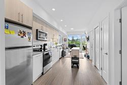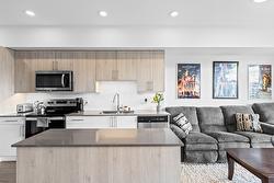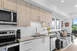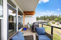 Enjoy stunning mountain and city views from this bright, contemporary top-floor 2-bedroom townhome. Step inside to an airy open-concept layout perfectly designed for comfortable living and entertaining. The expansive primary bedroom easily accommodates a king-sized bed with room to spare for a cozy reading nook or home office setup. The versatile second bedroom is perfect for guests, a den, or an office. Enjoy the stylish kitchen with modern cabinetry, quartz countertops, and stainless steel appliances, seamlessly flowing into the living and dining areas — ideal for both relaxing and entertaining. Large windows fill the home with natural light, while the east-facing deck provides the perfect spot to savour morning sunrises and shaded afternoons. This energy-efficient home comes equipped with roughed-in solar panels to help lower utility costs. Additional highlights include in-suite laundry, ample storage, and quality finishes throughout. Located minutes from Knox Mountain Park, you’ll have endless biking, hiking, and walking trails right at your doorstep. Plus, you’re just a short drive to downtown Kelowna, Okanagan Lake beaches, top-rated golf courses, restaurants, shops, and transit. Whether you're a first-time buyer, investor, or looking to downsize without compromising on lifestyle, this home is a must-see.