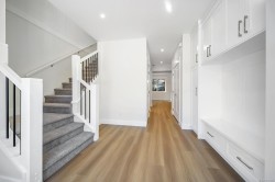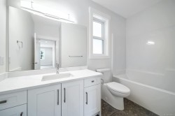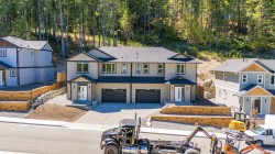 Introducing this brand-new side-by-side half duplex in Ladysmith’s newest Hunter Way development. The main floor welcomes you with a custom-shelved entryway, convenient powder room, and an open-concept design perfect for modern living. The sleek kitchen features soft-close cabinetry, quartz countertops, and flows into the dining and living areas, anchored by an elegant electric fireplace. Upstairs offers a versatile loft/flex space, two well-sized bedrooms, a 4-piece bath, laundry room, and a spacious primary suite with a custom walk-in closet and 3-piece ensuite. Enjoy year-round comfort with a heat pump for heating/cooling plus a backup gas furnace. Water-resistant laminate flooring throughout adds durability and style. This move-in ready home offers the perfect combination of new build quality, comfort, and contemporary design.(Hunter Way is located on the right hand side at the end of Malone Rd.) Price plus GST