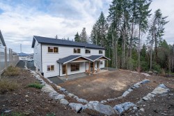 Stunning new half duplex at 672 & 668 Sanderson Rd in Ladysmith, offering 3 bedrooms and 3 baths with beautifully curated interior design—and no strata fees. The main floor features a bright, open-concept layout flowing from dining to kitchen to living space. The modern kitchen includes a large island with quartz countertops, stainless appliances, ample cabinetry, and a spacious pantry. The living area opens to a covered patio and a larger-than-typical private yard in a quiet, established neighbourhood. Upstairs, the impressive primary suite boasts a 7’x10’5” walk-in closet and dual-sink ensuite with in-floor heat. Two additional bedrooms, a full bath, laundry, & a versatile flex room complete the level. With peekaboo mountain views, quality finishes, extra garage storage, an attached garage, and a ductless heat pump, this home offers modern comfort for every buyer. Price plus GST. All measurements are approx, please verify if deemed important