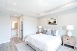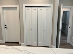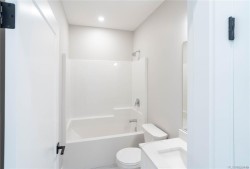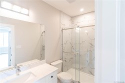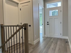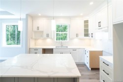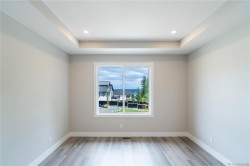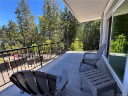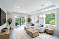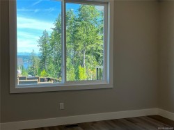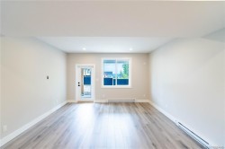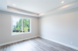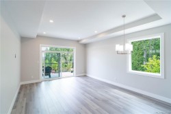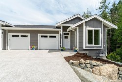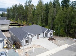 This half duplex home features impressive amenities, a rare 1 bed legal suite and zero strata fees. Enjoy ocean & forest views from the living room, kitchen, primary bedroom, and back deck. The kitchen offers elegant white cabinetry with soft-close drawers/ doors, under-cabinet lighting, & luxurious quartz countertops & backsplash. A tray ceiling in the living room enhances the spacious feel, complemented by durable laminate flooring and stylish tile in the bathrooms. Additional highlights include 9’ ceilings, an on-demand hot water system, and a natural gas furnace with air conditioning roughed in, plus a natural gas barbecue r/i connection on the patio. The legal 1 bed suite has convenient level entry, its own electric hot water tank, and baseboard heating. Built by an established builder, this home comes with a 10-yr warranty and showcases craftsmanship. Measurements are approximate so please verify if important. Don’t miss the chance to experience this remarkable half duplex!