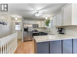 Don’t miss this rare opportunity to own a Lake Country gem! Priced below assessed value -beautifully renovated & tucked away in a quiet, desirable neighborhood, this stunning home offers an exceptional lifestyle. 2 bed 2 bath walkout rancher & 1 bed 1 bath inlaw suite with separate entrance as an income helper. 1 carport & double detached garage is ideal for storage, a workshop, & all the toys (boats, RVs etc). Access from front OR rear & parking for many cars Sip your coffee or refreshment on the covered deck watching the sunrise & sunset illuminate the lakes mountains & orchards. The large private backyard is perfect for gardening, the kids, & entertaining! Enter from the carport into the kitchen (easiest grocery unload ever!) The open concept kitchen & dining space is flooded with natural daylight and flows into the large living room featuring a natural gas fireplace. Stroll down the hall to the 2 generously sized bedrooms and tastefully renovated bathroom. Other enhancements: Kitchen appliances, back splash, counters and cupboards, newer: roof, gas furnace, hot water tank, blinds, washer/dryer, water softener, windows, A/C Premium flooring for entire basement included Walking distance to schools & surrounded by world-class wineries, golf, skiing, lakes & beaches, international airport, UBCO, & OC. Stop scrolling and start living! Book a viewing today. This won’t last long (id:27)