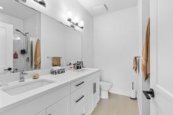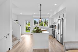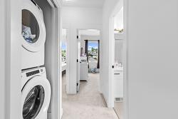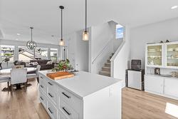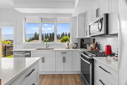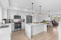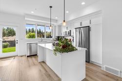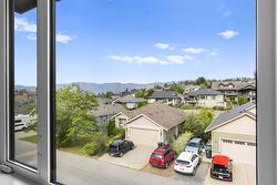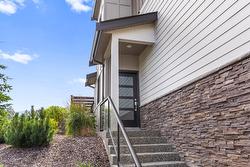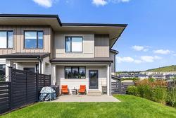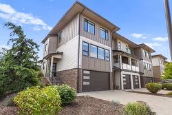 Bright & Modern End Unit in Rockridge at The Lakes. A vibrant and family/pet friendly townhome community in the heart of Lake Country. This stylish 3-bedroom + den/flex, 3-bathroom end unit offers the perfect blend of space, functionality, and comfort. Flooded with natural light, the main floor showcases a modern open-concept design with large windows throughout. The kitchen is a true highlight, featuring quartz countertops, a gas range, sit-up island, and cozy eating nook. The layout flows seamlessly into a spacious dining area and bright living room—perfect for everyday living and entertaining. Step out from the kitchen to your private, elevated backyard oasis with panoramic Eastern Mountain views. With no units directly behind, you’ll enjoy added privacy along with a gas hookup, power, and water connection. Upstairs you’ll find three well-appointed bedrooms, including a generous primary suite with a 4-piece ensuite. The laundry is conveniently located on this level as well. The lower level adds valuable flexibility with a den/flex room – perfect for a home office, gym, or guest space. Additional features include a double car garage, a full-length 26 ft driveway that easily accommodates most vehicles, and close proximity to visitor parking—making hosting friends and family a breeze. This home truly has it all—modern comfort, unbeatable functionality, and a fantastic location.