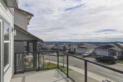 Perched on a higher lot in Westview at the base of Skirt Mountain, this newer 4 bed + den, 4 bath home offers sweeping ocean & mountain views from the front deck & primary bedroom, stretching from the Olympic Mountains to Juan de Fuca Strait & downtown Victoria. Thoughtful builder upgrades & custom millwork enhance the well-maintained interiors, and the modern open floor layout is ideal for entertaining & everyday family living. The grand primary retreat features a walk-in closet & spa-inspired ensuite. Plus the legal 1-bed suite with private entry, laundry, high ceilings & its own outdoor area adds flexibility or income potential. Enjoy efficient year-round comfort with a modern heat pump & gas furnace, plus a cozy gas fireplace. The flat backyard is a blank canvas ready for your vision & the perfect place for your kids and pets to enjoy. Situated in a calm, family-friendly setting near lakes, trails, parks & conveniently close to Bear Mountain Resort & all West Shore conveniences.