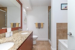Condo w/Suite Potential. Located 20 mins from Downtown Victoria&5 mins from Millstream Village, Langford in the Prestigious Bear Mountain Golf Resort Village, these units are in a well-maintained building that has undergone many recent upgrades incl: new carpet in the hallways, fresh paint in the main hallways, all exterior trim&balcony railings. Located in the heart of the resort on the 9th hole, this well-kept 1 bed 1 bath condo w/ laundry has a spacious kitchen w/lots of cupboard space & classy granite sit-up island. Features a big living rm w/sizable dining room space, huge windows, electric fp&private south facing sundeck overlooking green space&the fairway. Bachelor suite w/separate entrance,own kitchen area, 4 pc bath&private south facing sundeck. (Note: no laundry in the bachelor suite (set up like a hotel room) electrical panel is in the main unit, each with its own underground parking spot, mailbox&storage locker.. Both units to be sold together.