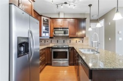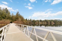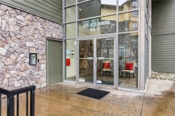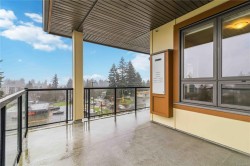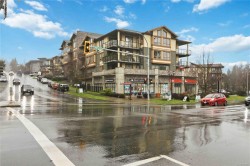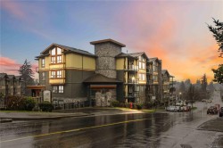 Welcome to this TOP FLOOR northwest corner unit in the popular Waterstone complex. This unit offers soaring vaulted ceilings, a gas fireplace, open concept kitchen/dining and living area, primary bedroom with double closets and an ensuite bath with walk-in shower, generous second bedroom and full 4 piece bathroom. A huge wrap around deck with views over Glen Lake to the Sooke Hills is the perfect spot to take in the sunset. Additional features included heated tile floors in the bathrooms, on-demand hot water, natural gas BBQ hookup on the balcony, secure underground parking, bike storage and a dedicated storage room adjacent the parking stall. The Waterstone offers outstanding amenities including a well-appointed gym, heated indoor pool, sauna and meeting room! Pets are welcome too. Centrally located on a bus route, a 5 minute walk to Glen Lake and just a few blocks to the excellent shopping in downtown Langford.
