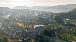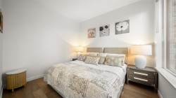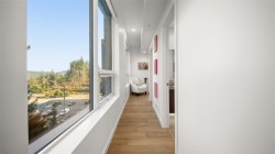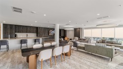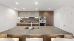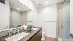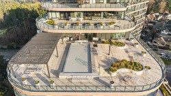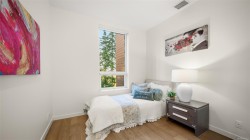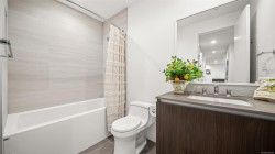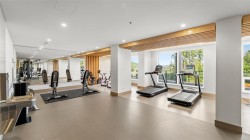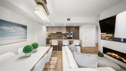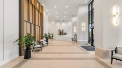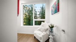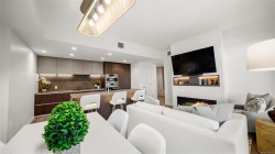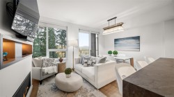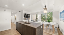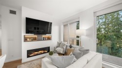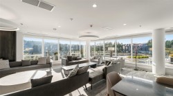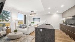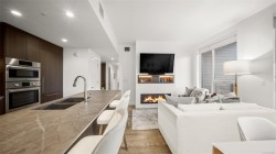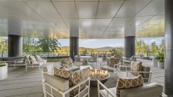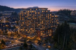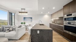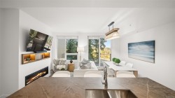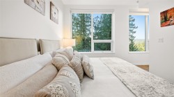 Elegant suite at One Bear Mountain offers tranquil living with concrete construction & bright, thoughtfully designed layout. This elegant 2 bed, 2 bath home spans nearly 1,105 sqft with high ceilings, expansive windows, a cozy gas fireplace, spacious balcony with mountain & forest views, and a peaceful creek to listen to as you fall asleep. The open-concept kitchen features premium cabinetry, quartz countertops & quality integrated appliances, flowing seamlessly into the living & dining areas. The primary bedroom includes a walk-in closet and ensuite, while the second bedroom is ideal for guests or a home office. Enjoy in-suite laundry, A/C, Level 2 EV charger in your parking stall & TWO storage lockers. Resort-style amenities include fitness centre, yoga studio, outdoor pool, sky lounge (up to 100 guests) & business centre - with WiFi access - with TVs in the sky lounge, business centre & yoga studio, plus pet & car wash stations & nearby golf, dining & trails.