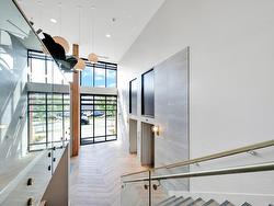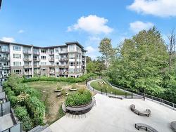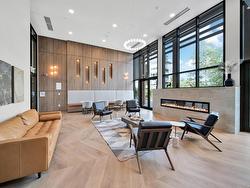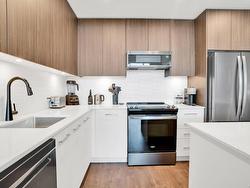 Private, top-floor 2 bed, 2 bath condo at Reunion in Langford’s Belmont community. Nearly 1,000 square feet of well-designed space with elevated ceilings and oversized windows for great natural light. Bedrooms are separated for privacy, plus there's a work-from-home nook. The kitchen features full-height cabinetry, quartz countertops, Whirlpool appliances, and a large island. The primary suite includes a walk-through closet and ensuite with double sinks and glass shower. Private covered balcony has treetop views and a gas BBQ hookup. Full-size in-suite laundry, large pantry storage, secure underground parking, and storage locker included. Pet- and rental-friendly building. Amenities include fireside lounge, chef’s kitchen, gym, outdoor BBQ area, dog wash, dog run/play area, and bike storage. Across from Belmont Market and Westshore Town Centre. Direct access to Galloping Goose Trail and close to parks, lakes, and Bear Mountain.