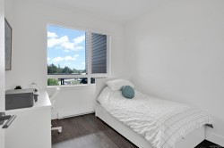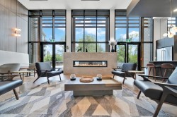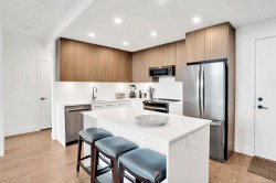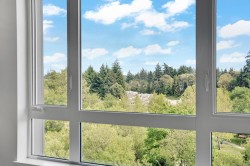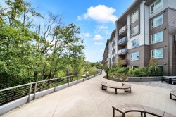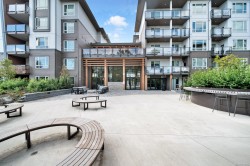 Private, top-floor 2 bed, 2 bath condo at Reunion in Langford’s Belmont community. Nearly 1,000 square feet of well-designed space with elevated ceilings and oversized windows for great natural light. Bedrooms are separated for privacy, plus there's a work-from-home nook. The kitchen features full-height cabinetry, quartz countertops, Whirlpool appliances, and a large island. The primary suite includes a walk-through closet and ensuite with double sinks and glass shower. Private covered balcony has treetop views and a gas BBQ hookup. Full-size in-suite laundry, large pantry storage, secure underground parking, and storage locker included. Pet- and rental-friendly building. Amenities include fireside lounge, chef’s kitchen, gym, outdoor BBQ area, dog wash, dog run/play area, and bike storage. Across from Belmont Market and Westshore Town Centre. Direct access to Galloping Goose Trail and close to parks, lakes, and Bear Mountain.