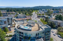 Experience elevated living in this top-floor penthouse, combining modern sophistication with durable steel and concrete construction. This bright, open-concept home offers two bedrooms, two bathrooms, high ceilings, and expansive windows showcasing sweeping mountain and city views. The gourmet kitchen features granite counters, stainless steel appliances, and an entertainer’s island. The spacious primary suite includes a walk-in closet and spa-style ensuite with walk-in shower and floor-to-ceiling glass. Enjoy in-suite laundry, wired surround sound, secure underground parking, and a storage locker. Residents also benefit from rooftop amenities including a running track, sitting areas, and a unique outdoor pool. Located in the heart of Goldstream Village with cafés, shops, parks, and transit steps away, this home offers a rare blend of comfort, luxury, and convenience. A standout opportunity in one of the Westshore’s most vibrant communities.