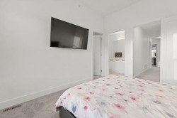 NO GST ON THIS TOWNHOUSE. Welcome to OAKLEY! 4-bedrooms & 3.5 bthrms true corner unit provides two entry points giving the exclusivity of private entrance and fence yard. This unit has many sought after features including A/C, BBQ gas line, EV charging port, Epoxy floor in the garage and ample storage. The open-concept main floor features 9 ft ceiling, premium Samsung appliances, a gas range and quartz countertops. A ground-level bdrm offers flexibility as a home office or guest suite. Upstairs, the luxurious primary retreat accommodates a king bed and boasts spa-like ensuite with dual sinks, a frameless glass shower. This home is perfect for families and an ideal location just mnts away from HWY 1, Langley Event Centre.