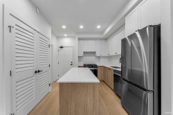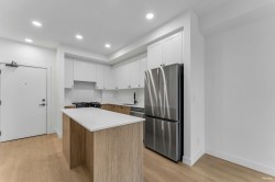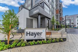 Welcome to Hayer Town Centre - A Modern Master Planned Community in West Langley with 35,000 SQFT of shops & services. This upgraded 1 Bed, 1 Bath suite boasts modern kitchen with a large island, high end appliances. The solarium is a paradise for someone who likes to enjoy the outside while enjoying a cup of coffee. The master suite also boasts a professionally designed closet organizer, optimizing storage and functionality! Location is unmatched providing quick and easy access to shopping, restaurants, highways, Costco, transit, schools and more! Noise dampening acoustic construction. 2-5-10 Warranty included.