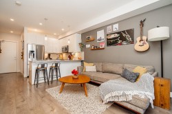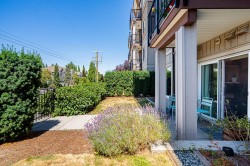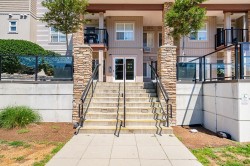 Welcome to your new home at The Benjamin in Langley City! This 773 sqft ground-level, west-facing unit is ideal for pet owners — with no size or weight restrictions for dogs. Inside, you'll find durable laminate flooring and a bright, open-concept living space. The kitchen features quartz countertops and stainless steel appliances, perfect for those who love to cook. The spacious primary bedroom includes a walk-in closet, a private ensuite bathroom and air conditioning. Enjoy the convenience of in-suite storage and laundry, and step out onto your private patio — great for morning coffee or letting the dog out with ease. One parking stall is included, and lots of street parking.
