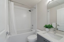 Welcome to Gabriola Park-Parkside Townhomes by Royale Properties, beautiful 4 bedroom, 2.5 bathroom townhome! The main floor features an open-concept layout with 9’ ceilings, where the kitchen is the heart of the home. Designed with style, stainless steel appliance package including a Venmar chimney hood fan. The kitchen smartly separates the living and dining spaces, creating both function and style. A powder room on the main floor adds convenience, while the covered balcony off the dining room is perfect for year-round, overlooking the fully fenced backyard. The true highlight of this home is its prime location backing onto a lush greenbelt—offering peace, privacy, and a touch of nature. Centrally located near multiple high rated schools, eatries, shops, parks, transit and so much more!