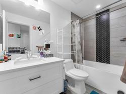 Welcome to Atrium - Modern living, convenience, and comfort in Langley. Featuring a chef's kitchen with full-sized stainless steel appliances, including a gas stove, and white cabinets. Enjoy your massive 236 sqft outdoor patio perfect for entertaining. With 3 beds, 2 baths & den, there's plenty of room for your entire family and home office. 2 parking stalls plus a large storage locker! Enjoy amenities such as a gym, clubhouse, media room, and playground. Located near the future Langley City Centre skytrain station, shops, the mall, and golf courses. Schools: Nicomekl Elementary & Langley Secondary.