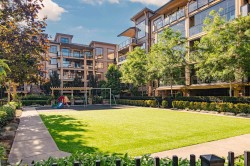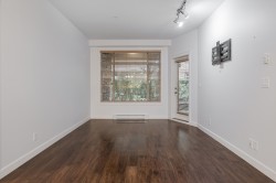 2 BED | 2 BATH | LARGE FLEX/DEN | PRIVATE PATIO. Bright & beautifully designed OPEN CONCEPT home that is functional, well laid out & exceptionally built. Bedrooms are positioned on opposite sides for added privacy, each with walk-through closets and ensuites featuring heated floors. Versatile DEN/FLEX room with closet works as a home office or potential 3rd bedroom. Updated white kitchen with quartz counters, 5-burner stove, walk-in pantry & BRAND NEW fridge with ice & water. Large private patio for year-round use. AIR CONDITIONING & high-efficiency heat pump. Updated carpets in both bedrooms. Vacant & move-in ready. 2 parking stalls plus secure garage-style storage with power. Excellent location close to shops, restaurants, schools, trails & HWY 1. Strata fee incl gas, hot water & gym.