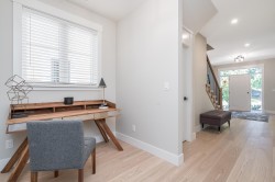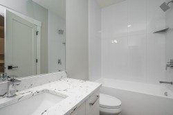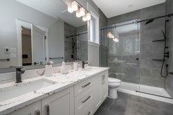 Stunning level entry basement home with quality workmanship & thoughtful design. Incredible European builder. Open-concept plan highlighted by wide-plank hardwood flooring, white shaker cabinetry & elegant quartz countertops throughout. Main features Gourmet kitchen w/large island, pantry, gas range & Fisher & Paykel appliance package, spacious great rm & doors to huge covered deck w/stairs to yard. 4 bedrooms & 2 full bathrooms, both w/dual vanities, walk-in shower & soaker tub complete the main floor. Lower level includes a den, wet bar, family rm & potential additional bedroom - could be a great nanny suite. Sep entrance to a legal 2-bedrm suite w/own laundry. H/W on demand & A/C! Sought after neighbourhood- close to schools, parks, dog park, Al Anderson Pool & miles of nature trails.