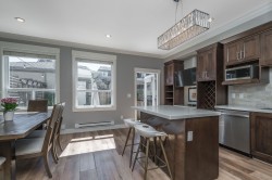 Welcome to this charming 5 bed, 4 bath row home in desirable Willoughby Heights. Offering 2,241 sq. ft. of thoughtfully designed living space, the main floor features an open layout with 8'11 ceilings, a bright living and dining area, modern kitchen, and convenient powder room. Upstairs you’ll find 3 spacious bedrooms including a primary retreat with walk-in closet and ensuite, plus a full bathroom. The lower level offers 2 additional bedrooms, a rec room, separate entrance, and easy suite potential. Enjoy outdoor living on the large patio and the convenience of a detached garage. Ideally located, this home is walking distance to Lynn Fripps Elementary and Willoughby Town Centre, with parks, shopping, and amenities nearby—perfect for families or investors alike. BONUS: NO STRATA FEES!