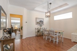 Munday Creek rancher townhome with no stairs! This 2 bed, 2 bath home offers formal living and dining areas, two gas fireplaces, and a bright kitchen, family room, and eating area that walk out to a south-east facing patio backing onto greenbelt. Spacious primary bedroom with walk-in closet and 5-piece ensuite. Updated with a Navien tankless hot water system. Located in a quiet and sought-after 55+ community, just minutes from Derby Reach Regional Park. A rare opportunity for easy, single-level living in a serene setting.