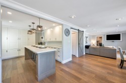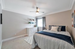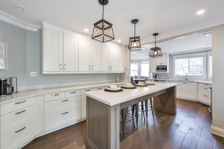 Beautiful 2-storey home on a quiet, tree-lined street in upper Murrayville. Main floor boasts wide plank hardwood flooring, crown moldings, a gorgeous renovated & expanded kitchen featuring extensive white shaker cabinetry, quartz counters, breakfast bar with pendant lighting, & stainless appliances incl double-wide fridge/freezer. Eating area w/ bay windows, and adjacent family room w/ glass doors leading to huge rear decks, private yard, and detached 230 sq ft rec room/flex space (ideal for teens or private office). Bdrm/flex rm, powder rm, and laundry. 3 spacious bedrooms up incl primary bdrm w/ sitting area and gorgeous ensuite. Bathrooms tastefully updated. Double garage, & RV parking! Great family neighbourhood close to parks, cafes, shops, schools, hospital, & WC Blair Rec Centre.