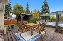 Fort Langley Character Rancher with Modern Comforts! Step inside this beautifully maintained 4-bed, 2-bath rancher with finished basement, set on a spacious corner cul-de-sac lot in the heart of Fort Langley. Enjoy the warmth of original 1948 hardwood floors, a bright open-concept living and dining area with crown mouldings, and a cozy sunroom flooded with natural light. The spacious kitchen impresses with Nu-Heat flooring. Downstairs features a separate entrance, skylights, and a fireplace, perfect for an office, guest suite, or family room. Recent upgrades include 200-amp electrical service, six-month-old roof, new gutters with leaf guards, double garage (rare for the area), and a Hydropool swim spa for year-round enjoyment. Walking distance to Historic Fort Langley. Call Today!!