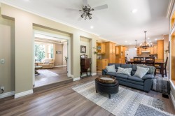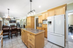 Front veranda welcomes you to this Gorgeous Custom-built 4382 sf 2-storey with fully finished basement (roughed in for a suite or wet bar) on a Private parklike acre backing onto greenbelt. Quiet street. Oversized 810 sf triple garage, loads of parking. New 2025 - high-efficiency furnace, central AC, hot water on demand, flooring & paint. Custom maple kitchen w/island open to bay window eating area & family rm w/gas fireplace & french doors to patio & yard. Cross hall living & dining room/office. Up - primary bedrm w/walk-in closet & soaker tub & sep shower ensuite. 2nd oversized bedrm (easy 3rd bedrm). Huge games rm over the garage w/sep entrance (easy nannies quarters). Daylight basement w/sep entrance (easy suite), large rec room, 2 bedrms & a sauna. Quick access to Hwy 1. A must see!