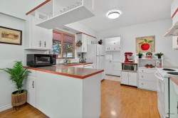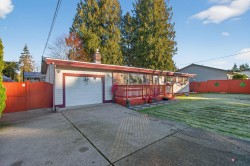 Exceptional Value & Rare Opportunity! This very well-kept, move-in ready 3-bed, 2-bath rancher offers comfortable one-level living with a bright living room with gas fireplace, a dining room with sliders to the private backyard, and a primary bedroom with a 3-piece ensuite. Updates include a new fence, play area, front deck, storm door & Leaf Guard gutters. Sitting on a 72' x 118.5' (8,532 SF) lot, the property also offers future potential to redevelop into a duplex or fourplex (buyer to verify with city). Single garage plus lots of parking. Quiet yet central—steps to shopping, schools, parks & transit. A must-see!