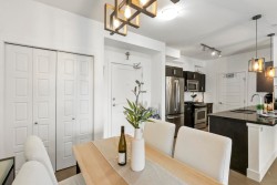 This bright, west-facing 2-bed, 2-bath home delivers a rare mix of privacy, comfort, and everyday convenience. The thoughtful split-bedroom layout creates great separation, while large windows frame calming views into lush greenspace. A stylish open kitchen with gas range and granite counters anchors the living area, and the bonus laundry room adds the storage every condo owner wishes for. Step onto the generous porch to unwind at sunset, or stroll to Willowbrook’s shopping, dining, parks, and upcoming SkyTrain—just minutes away. Centrally located yet tucked into a peaceful setting, this is modern Langley living with room to breathe.