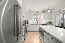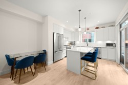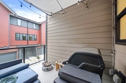 Welcome to MAYFAIR in the heart of West Willoughby! Built by award-winning Zenterra, this beautifully maintained 4 bed 3 bath townhouse offers 1,463 sf of thoughtfully designed living space with no compromise on quality. Bright open-concept main floor features 9’ ceilings and stylish vinyl flooring. A contemporary kitchen perfect for entertaining with quartz countertops, KitchenAid s/s appliances, spacious island, custom built-in hutch with wine fridge, bar area and tons of extra cabinetry. Upstairs offers 3 generous bedrooms while the versatile 4th bedroom on the lower level is ideal for guests or flex/office space. Enjoy A/C, forced air gas heating and hot water on demand. Double side by side garage & fully fenced yard w/ BBQ gas hookup on balcony. OPEN HOUSE SAT FEBRUARY 28 2-4PM.