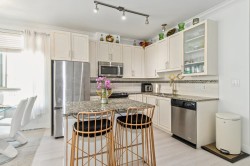 Corner penthouse living at its best with the price you can afford at Athenry Gate! This corner unit will please you with its spacious and functional floor layout. Enjoy this well ventilated, well lit 2 beds and 2 ensuites unit. The kitchen is furnished with SS appliances and a new double door fridge and quartz countertop. The unit has new laminate flooring throughout, 2 parking stalls and a locker. Enjoy the convenience of being in a central location surrounded by restaurants, shopping, schools and transit hubs. This cozy penthouse and its views of the mountains from the living room will surely give you positive vibes! Your new home awaits! Parking stalls #47 & #52. Locker#53.