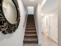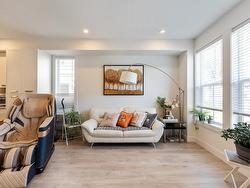 Welcome to OAKLEY WILLOUGHBY by Warwickshire Homes—an exclusive collection of refined 3 & 4-bedroom townhomes nestled on a quiet street in the heart of Willoughby. This is, east-facing corner residence showcases 4 bedrooms and 3.5 bathrooms with a spacious double side-by-side garage, extended driveway, and EV rough-in. The open-concept main floor features soaring 9ft ceilings, rich finishes, and a chef-inspired kitchen with a 9-ft island, elegant tile backsplash, premium Samsung appliances, and gas range. A ground-level bedroom offers flexibility as a home office or guest suite. Upstairs, the luxurious primary retreat accommodates a king bed and boasts a spa-like ensuite with dual sinks, quartz counters, and a frameless glass shower. Private patio with BBQ gas line and sophisticated