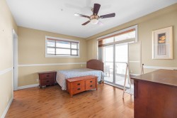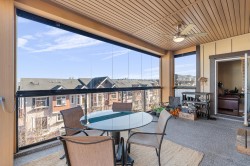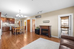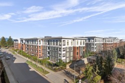 Welcome to Yorkson Creek Parkside I in the heart of desirable Willoughby! This bright and spacious 2 bed, 2 bath + den corner unit offers over 1,040 sq ft of thoughtfully designed living space. The open-concept layout is filled with natural light and features a modern kitchen with stainless steel appliances, generous cabinetry, and ample prep space—perfect for everyday living and entertaining. The primary bedroom is a true retreat, complete with a spa-inspired ensuite boasting heated floors and a dual vanity. The versatile den is ideal for a home office or flex space. Enjoy year-round comfort in the oversized retractable glass solarium showcasing beautiful mountain views. Additional highlights include A/C with a high-efficiency heat pump, 2 parking stalls, and storage. Unbeatable walkabi