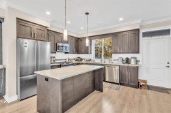 Welcome to *The Brooks* by Apex Custom Homes—nearly 2,000 sq. ft. of luxury living beside Routley Park! This spacious townhome features 3 beds, 4 bath, and a large rec room easily converted into a 4th bedroom with full bath. Enjoy radiant in-floor heating, on-demand hot water, Low-E windows, and wide-plank laminate floors. The chef-inspired kitchen boasts quartz counters, stainless steel appliances, gas range, extensive cabinetry, large island, and a feature wall with built-ins and wine rack. Elegant finishes include crown moulding, California-style closets, designer blinds, and glass-enclosed showers. Entertain on your covered patios with a gas BBQ hookup, and appreciate side-by-side garage parking. Meticulous this home blends comfort, efficiency and style in one exceptional package !