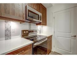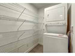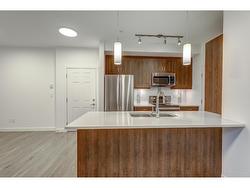Welcome to Lattice2. This beautiful 2 Bed + Den is freshly painted and enhanced with new LED lighting making this home feel bright and modern. The open-concept floor plan is thoughtfully designed with oversized windows that frame stunning views and flood the space with natural light. The contemporary kitchen features quartz countertops, SS appliances, ample cabinetry, and an island ideal for both everyday living and entertaining. Enjoy the comfort of air conditioning, a rare and valuable feature, along with a spacious laundry room offering excellent storage and functionality. Step outside to a generous deck, perfect for relaxing or hosting while taking in the unobstructed surroundings. Enjoy rooftop amenities and a prime location close to schools, parks, shopping, and transit. (id:27)