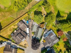 Beautifully renovated and full of West Coast charm, this 3-bed rancher is tucked away on a quiet cul-de-sac. The gorgeous kitchen has loads of cabinets and counter space with a massive island. Step down into the formal living room with vaulted wood ceilings and stone fireplace. The primary bedroom with 2 pc ensuite (closet is plumbed for a shower) and french door access to the back yard is a dreamy oasis. The backyard has a massive deck overlooking a private, fenced yard that backs directly onto Newlands Golf Course, with a gate for easy access. Enjoy the two storage sheds & RV parking. There's a potential future use to Low Rise Residential, Buyer to confirm with the City. Live long term or hold for investment!