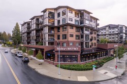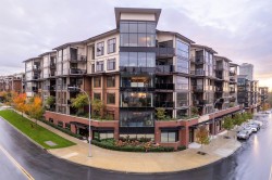 Welcome to Yorkson Park — a premium penthouse with 12 ft vaulted ceilings, luxury living in the heart of Willoughby Heights! This spacious 3 bed, 2 full bath home features beautifully designed interiors with laminate flooring & plush carpeting in the bedrooms. A versatile flex room adds extra value — perfect for home office, den or 4th bedroom. Enjoy garden views and natural light streaming in. A Cozy Fireplace sets the mood. The glass-enclosed solarium is equipped with sliding/retractable panels. This thoughtful design creates an indoor/outdoor flow, in summer & sheltered outdoor space yr round. For outdoor entertaining, a BBQ area is ready with a natural gas hookup. This home comes with 2 Parking (electrical outlet in stall) and 2 Storage (attached to pkg.) Showings by Appt.