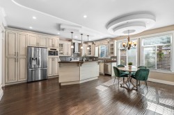 Located on a quiet street in Willoughby, this well-kept 6 bdrm&4 bath home offers a spacious, functional layout well-suited for modern family living with space for every need. The main floor features a dramatic great room with soaring ceilings, a bright home office with French doors, formal dining area, and a warm kitchen with antique cabinetry, granite counters, and hickory hardwood floors. Upstairs is a generous primary suite with vaulted ceilings, a spa-like ensuite, and three more bedrooms. The basement includes a bright 2 bdrm with a large rec room and separate entry—great for extended family or rental income. Enjoy a west-facing landscaped yard, double garage, and proximity to schools, parks, shops, and future SkyTrain.
