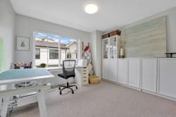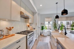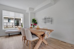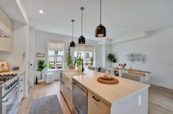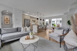 Embrace a nature-filled lifestyle where the comfort of townhome living meets the peace of a green oasis. This 3-bed, 3-bath townhouse offers a walk-to-school community, with RE Mountain Secondary just steps away. Enjoy premium features like Fisher & Paykel appliances, a dual-drawer dishwasher, and air conditioning. Relax by the beautiful solid maple fireplace or in the primary suite's spa-like ensuite, both offering tranquil views of the greenspace. Practicality is covered with an oversized, side-by-side garage featuring an epoxy floor and a ready-to-use EV charger.