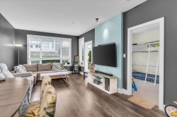 Spacious and bright ground-level end unit offering 2 bedrooms, 2 bathrooms, and 2 parking spots. This well-maintained home features an open-concept layout with oversized windows filling the space with natural light. The modern kitchen is equipped with quartz countertops, stainless steel appliances, and ample cabinetry. Primary bedroom includes a walk-through closet and private ensuite. Enjoy a large patio with convenient access, perfect for outdoor living. Located in a well-managed complex within walking distance to shopping, Costco, restaurants, transit, and recreation.