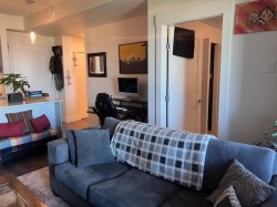 4 yrs old one bed condo in convenient location with shopping, fitness center, eateries right at your footsteps. Open floor plan equipped with a modern kitchen, ample cabinets. Exceptional big balcony to have your morning coffee and sunset dinner. Top floor and on the quiet side of the building. Easy access to Hwy 1. All measures approx., to be verified. Rented to good tenant and love to stay. 24 hours notice for showing, prefer afternoon between 2-5pm. Book your app't. now! Open House 2-4pm Sunday Oct. 19