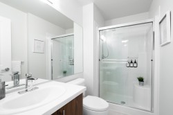 Top-floor, renovated (Over 40K in upgrades) corner unit at The Grove! This bright 2-bed, 2-bath home offers a beautiful kitchen with slow-close cabinetry, Caesarstone quartz counters, new appliances, wide plank flooring, and updated bathrooms. Spacious cross-hall layout with a large covered balcony and peaceful creekside views. Includes 2 parking stalls. One of the best units in the complex - private, stylish, and steps from shopping, schools, and transit. Move-in ready with top-quality upgrades! Perfect for first-time homebuyers or investors!