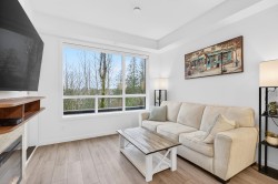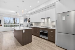 Greenbelt @ Highpointe. This one bedroom home features 557 square foot of living space, an open kitchen with Silestone Quartz Counters, high end stainless steel appliances, and oversize island for entertaining. Don't miss the elevated oversized private patio with solarium, offering extra living space year round. Pet friendly, two dogs or two cats; or one dog and one cat some/ breed restrictions. Highpointe features modern concrete and steel quality, just steps to shopping, restaurants, easy access to Lougheed Highway, and West Coast Express. BONUS - end unit underground parking stall is next to your own private storage locker.